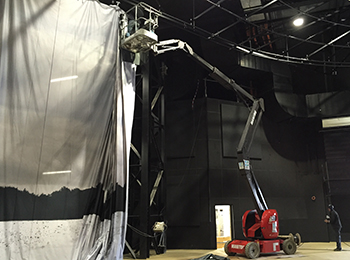 فريق التثبيت ركب شبكات كاذبة فوق 4 من 6 مسارح: النظام الضروري الذي يمكن إخفاؤه بسهولة لتعليق الستائر، والستائر المطبوعة ومصادر الضوء وغيرها من العناصر التي لا غنى عنها لهذا سينوغرافيا التقنية العالية. على اثنين من المسارح الستة، حيث ان ارتفاع بعض العناصر الزخرفية لم تسمح بتثبيت الحدود، واستخدام قماش StretchTulle سرعان ما أصبحت أمر بطبيعة الحال. سقوف متوترة انشئت في إطارات معقدة معلقة على ارتفاعات مختلفة فوق خشبة المسرح نفسها يمكن أن تستخدم لخلق خداع بانها اغلقت - ولكنها مرنة - سقف اسود.