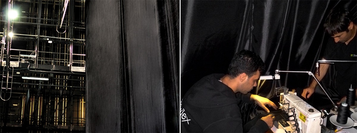وبصرف النظر عن اللون والشهادة البيئية،الوزن الهائل للستائر المسرحية الجديدة في مسرح البولشوي حطم الارقام القياسية. ستائر المصنوعة من قماش Velours القطني من ShowTex التي وصل طولها 20 متر وشيدت من 600 جرام لكل متر جنبا إلى جنب مع 5 لوحات تمنع تردد الصوت هي أثقل الستائر من أي وقت مضى في عالم المسرح.