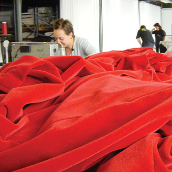 Each team of experienced sewing experts has the capabilities to meet any design challenge: from made-to-measure curtains incorporating traditional finishing techniques, basic black box drapes, giant cycloramas to bespoke scenic creations. Mobile sewing machines and seamstresses are available by request for other sewing services like repairs, alterations, and restoration of curtains and backdrops.