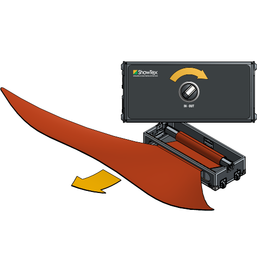 Operate the roller, rolling the Reveal Fabric into the Flightcase and stop when it is about 50 cm out of the FlightCase.