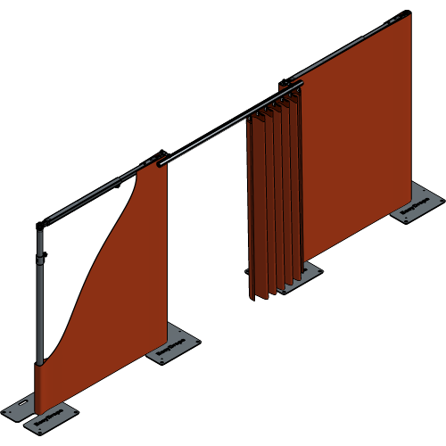 The wall setup with the ShowPipe allows you to create curtain walls like the normal wall setups but with an adjustable opening or doorway in your setup. The track is mounted on top of two Uprights with an Offset Plate. The curtain will be able to open and close in front of those two Uprights, giving you a clean and organized look.