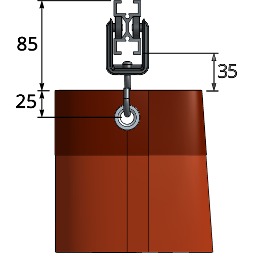 The stated load capacities apply to the rail only. The load-bearing capacity of the carrying construction (ceiling/truss/…) and all individual mounting accessories must be taken into account as well.