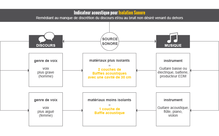 Chaque type de musique ou chaque voix humaine a sa propre place dans le spectre sonore et nécessitera une solution acoustique différente, avec des matériaux soit d’absorption, soit d'isolation sonore.