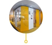 Skapa mångsidiga arbetsplatser genom att kombinera våra skensystem med brandklassade textilier.